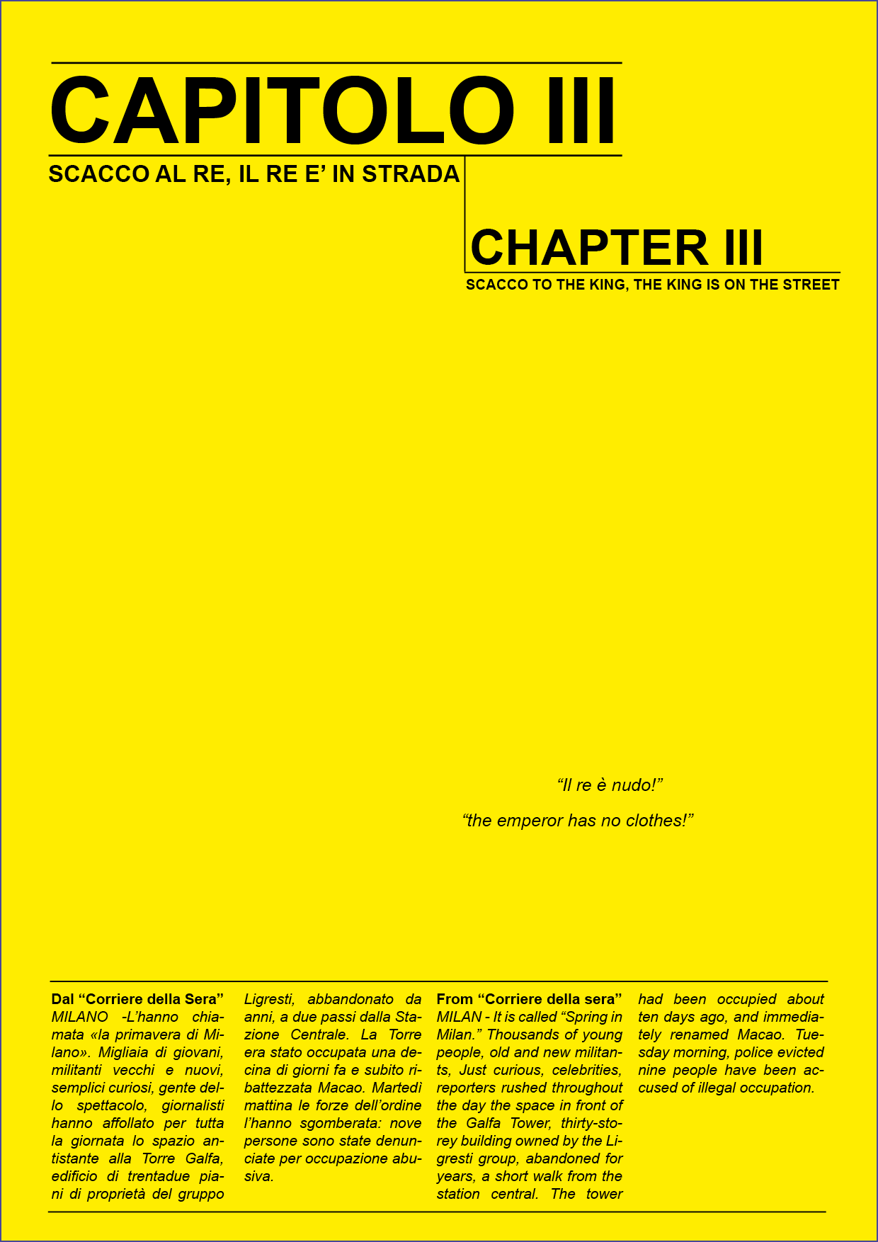 "L'intero lavoro è da interprare come frutto delle mie ricerche come artista che ha voluto rimettere in gioco le sue conoscenze interpretando la realtà di fenomeni realmente accaduti, cercando di trattarli con un linguaggio chiaro e comprensibile a tutti. In questo libro non si sostiene la validità della pratica dell'occupazione nè si inneggia a facili soluzioni per problemi e contrasti all'interno del tessuto sociale italiano, viene semplicemente mostrato il mio punto di vista su quanto accaduto e sta ancora accadendo. "