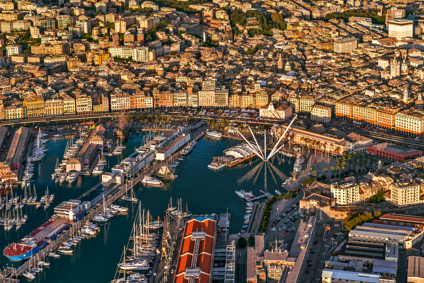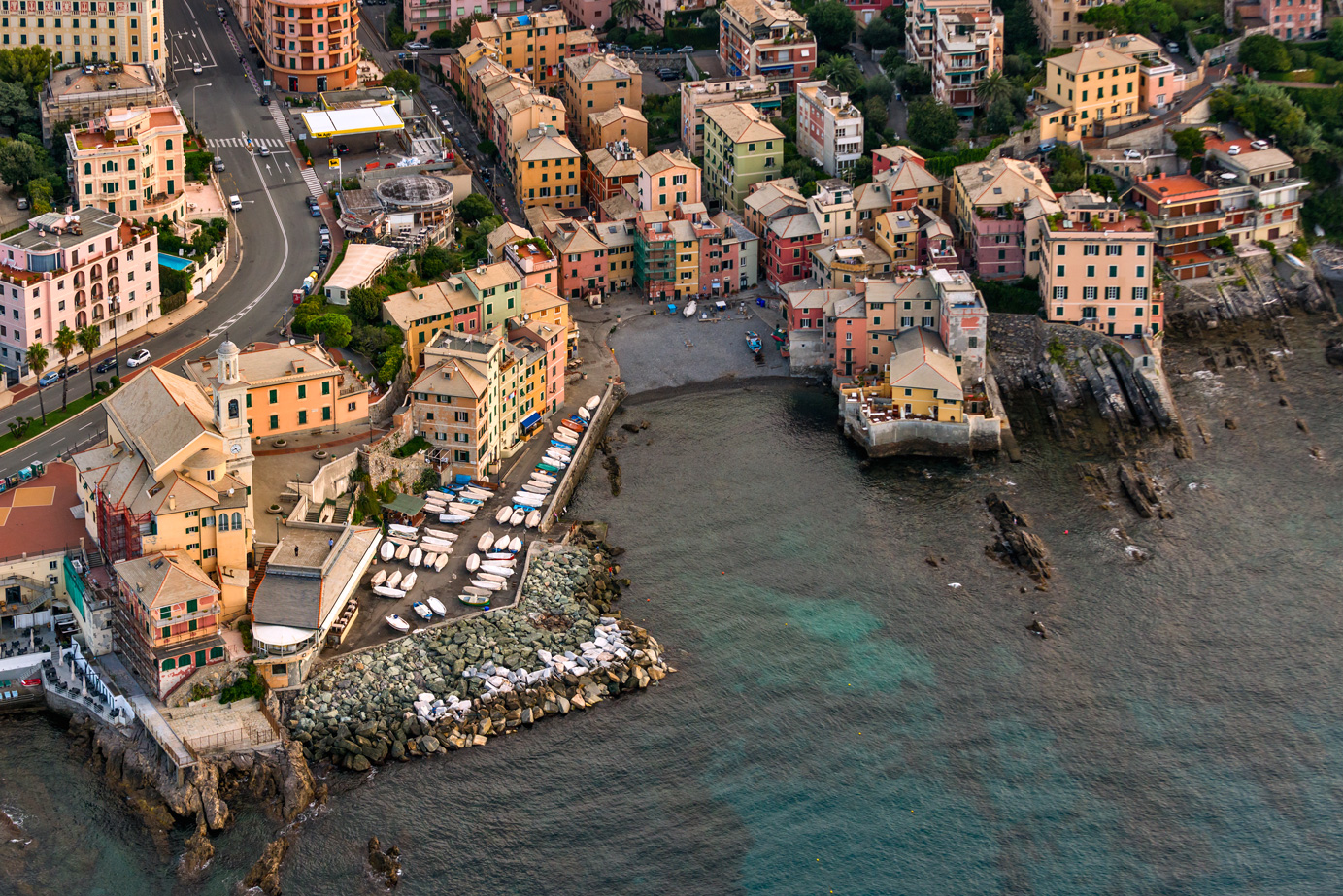 Il volo vi accompagnerà da Ponente a Levante accostando i suggestivi paesaggi di Boccadasse alla modernità delle torri vetrate.