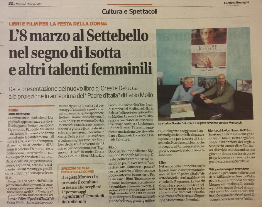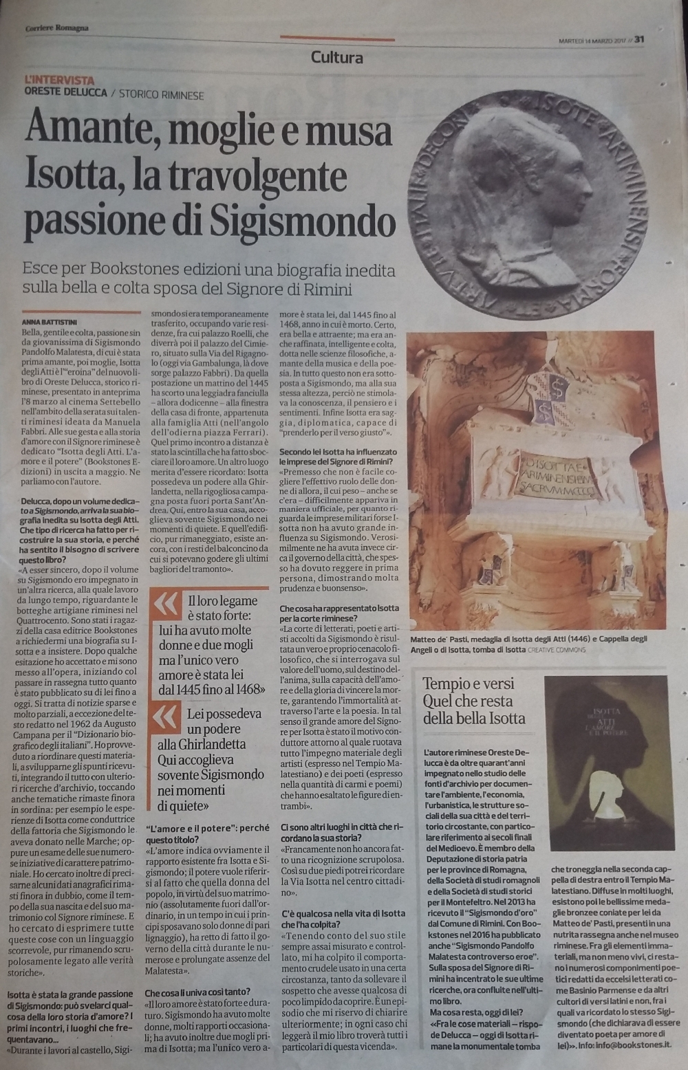 Quest'anno abbiamo deciso - con le stesse modalità dello scorso anno - di affiancare simbolicamente a Sigismondo il suo grande amore della vita, ISOTTA DEGLI ATTI,una sua biografia inedita sempre opera di Oreste Delucca.