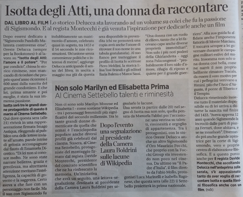 Quest'anno abbiamo deciso - con le stesse modalità dello scorso anno - di affiancare simbolicamente a Sigismondo il suo grande amore della vita, ISOTTA DEGLI ATTI,una sua biografia inedita sempre opera di Oreste Delucca.