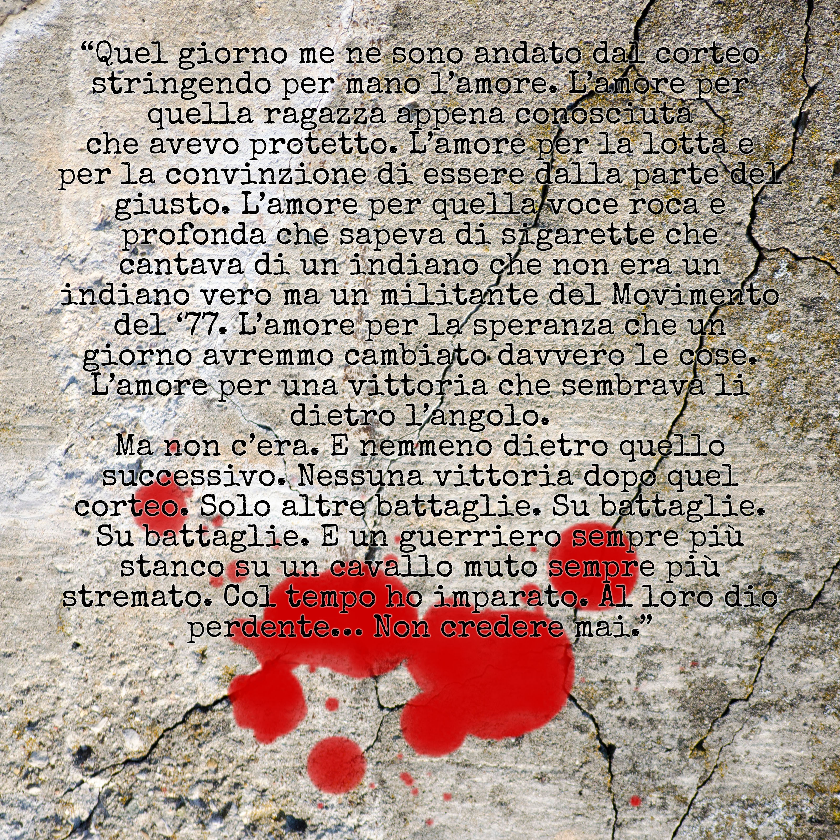 La biografia di un attivista, che come nella Coda di Lupo del cantautore genovese, diventa un archetipo del dissidente, fino al finale. Che è lo stesso della canzone di Faber: chitarra elettrica. Assolo. Fade out.
