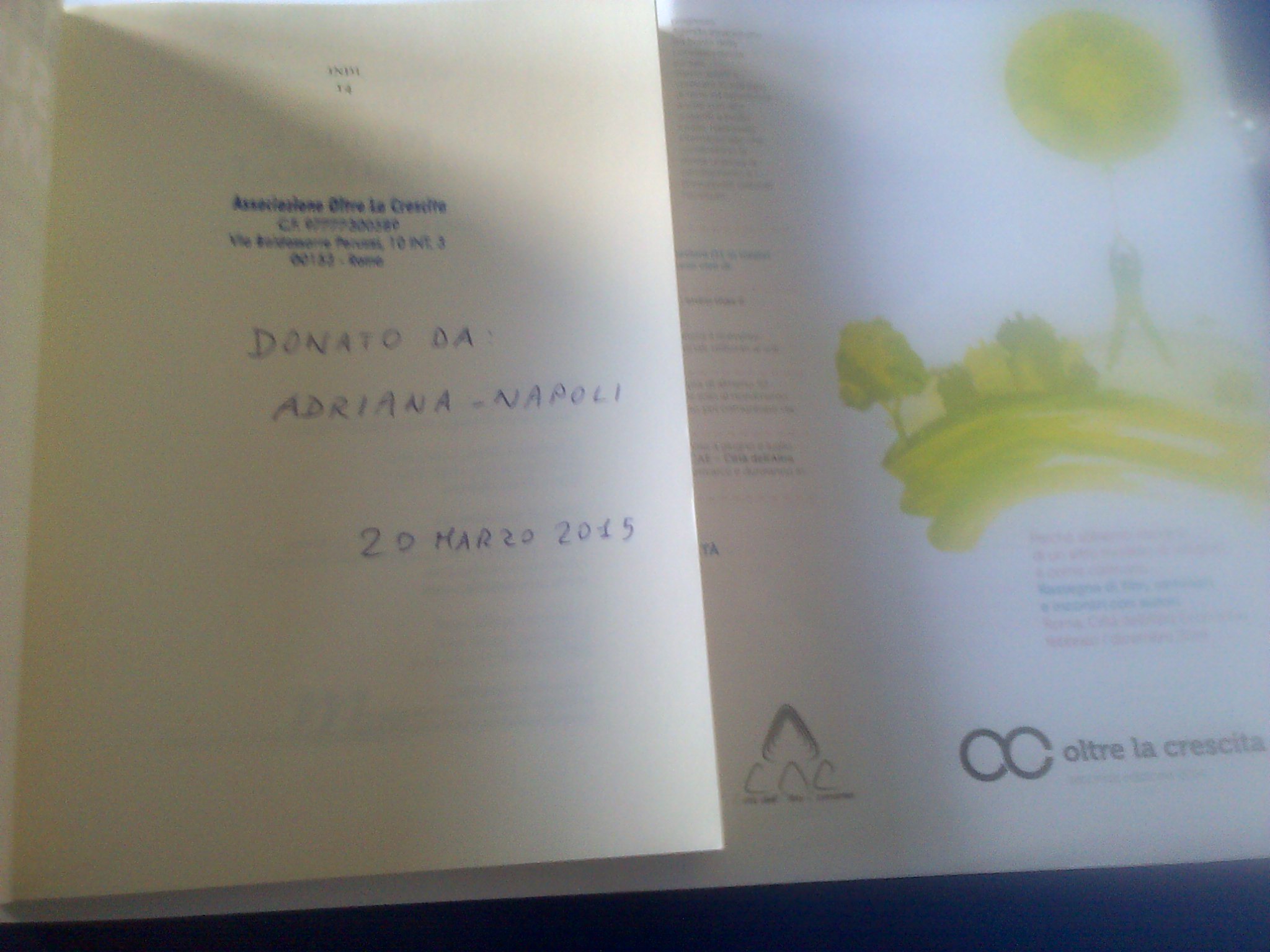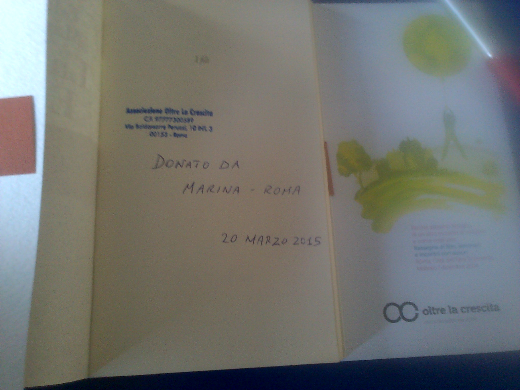Nei libri che riusciremo ancora d acquistare e donare alle biblioteche, indicheremo il nome di chi ha contribuito. Se chi ha donato, desidera anche suggerire un certo libro (che sarà quindi donato con la sua dedica) può scriverci a: oltrelacrescita@gmail.com o sulla pagina facebook.