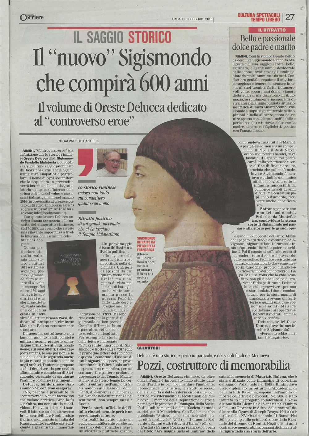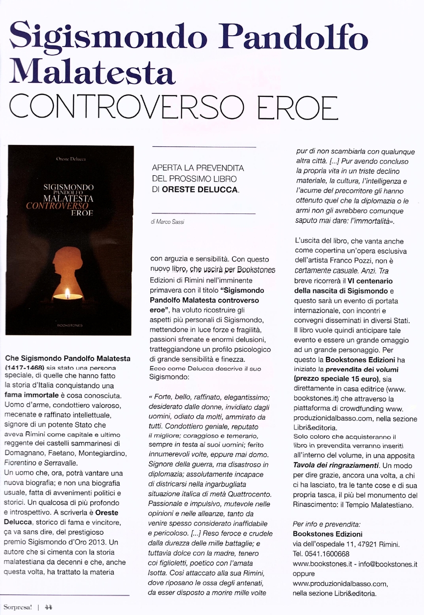 La casa editrice Bookstones intende far precedere queste celebrazioni da un volume dedicato al grande Signore riminese, tra i più illustri e famosi del Rinascimento italiano. Il libro si intitola SIGISMONDO PANDOLFO MALATESTA CONTROVERSO EROE ed è scritto dallo storico Oreste Delucca, al quale nel 2013 è stato assegnato il premio Sigismondo d'Oro.