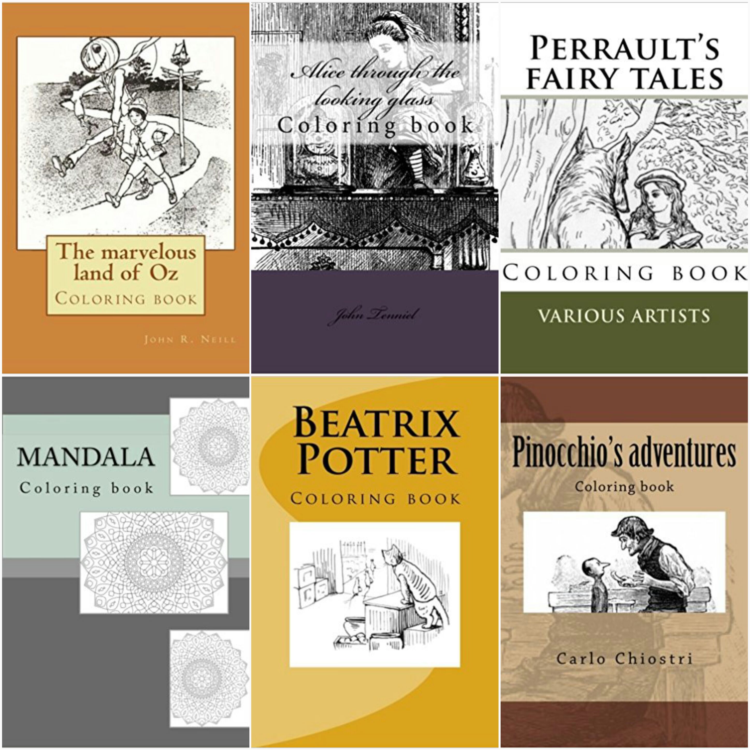 Oz, Alice's Wonderland, fables (Aesop, Phaedrus), fairy tales (Grimm, Andersen, Perrault) coloring illustrations.