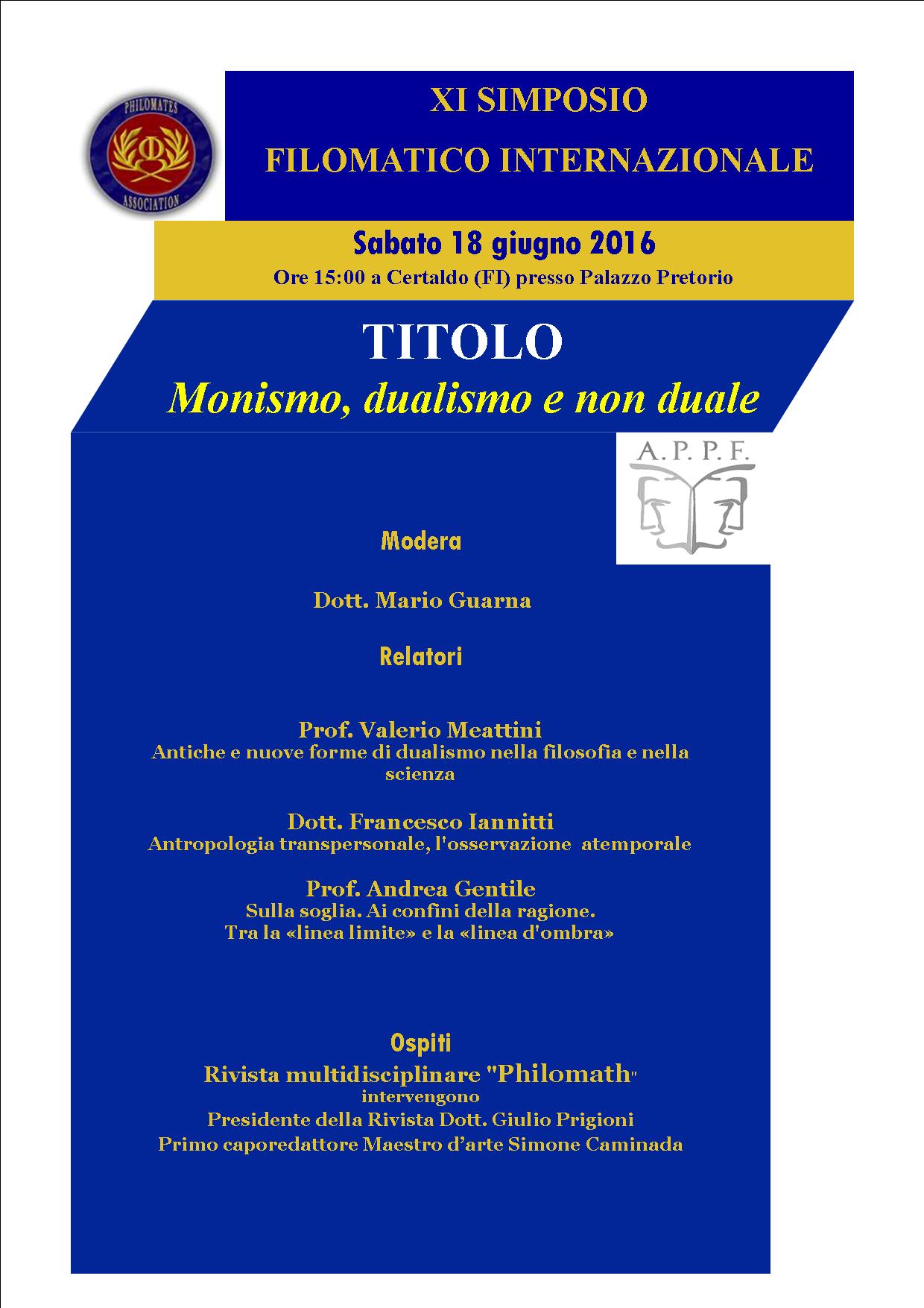 Il Simposio Filomatico Internazionale, organizzato dalla Associazione Professionisti Pratiche Filosofiche e Associazione Filomati, si svolgerà il 17 giugno 2017 dalle ore 15:00 nel Palazzo Pretorio a Certaldo in provincia di Firenze. La conferenza darà voce a pensatori d’eccezione, filosofi, antropologi, pedagogisti e scrittori. Il programma include presentazioni, discussioni il cui scopo sarà quello di approfondire il pensiero e la figura della filosofa neo-platonica Ipazia. Due saranno i concetti che graviteranno intorno al pensiero della filosofa alessandrina, libertà e dialogo.